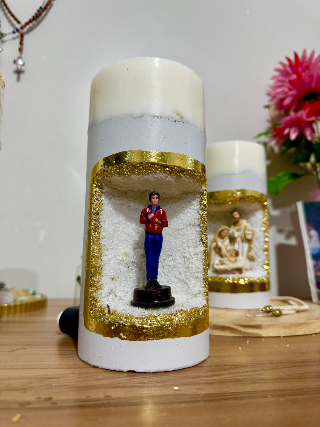 A vela Santuário Carlo Acutis é feita a mão, e por se tratar de um produto artesanal, cores e medidas podem ter pequenas variações.